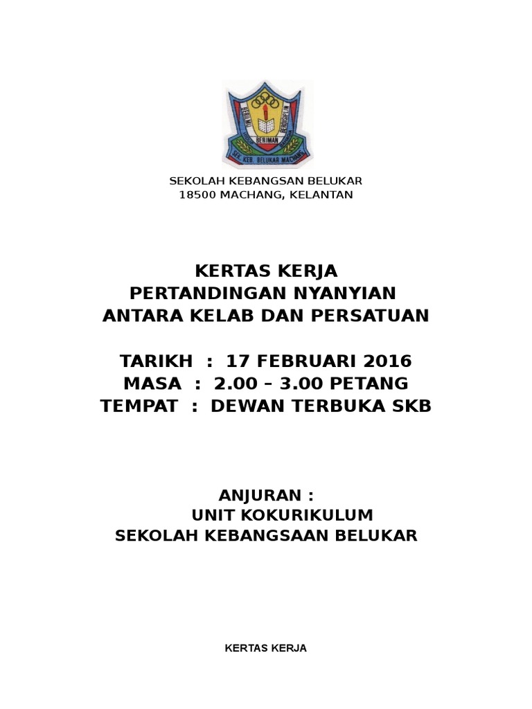 730 pagi - Pendaftaran peserta. Kertas kerja untuk mengadakan pertandingan nyanyian -- Lian 095345 041908 Sat Re. Interested in flipbooks about KERTAS KERJA SAMBUTAN HARI RAYA PERINGKAT SEKOLAH 2017.